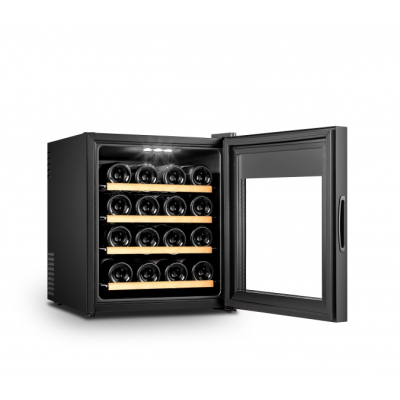 Термоэлектрический винный шкаф BONA BN-16D1 обладает средней вместимостью и способен разместить в себе до 16 бутылок. Располагаются они на полках из массива бука. Внутреннее пространство шкафа имеет одну температурную зону с возможностью настраивать её в диапазоне от +11 °C до +18°C. Электронный термостат помогает стабильно поддерживать заданную Вами температуру. Холодильник поддерживает влажность в диапазоне 60-80%, как в настоящем винном погребе.