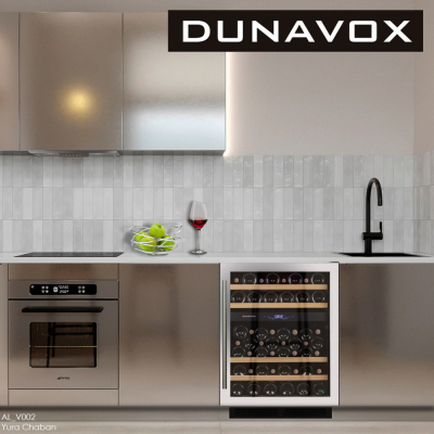 Винный шкаф Dunavox DX-53.130SDSK/DP легко встраивается под столешницу или может устанавливаться отдельно. Охлаждение компрессора происходит через вентиляционные решетки внизу шкафа, что позволяет встраивать винный холодильник без зазоров.